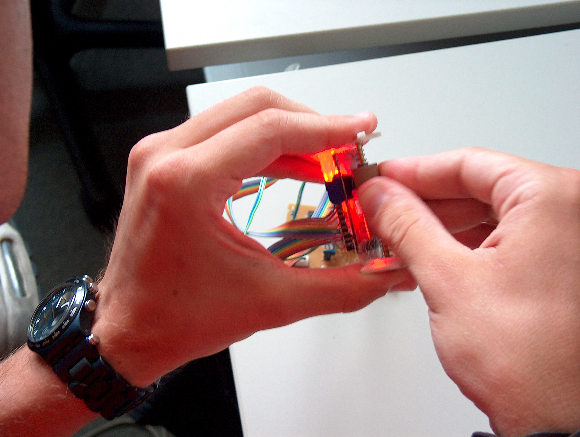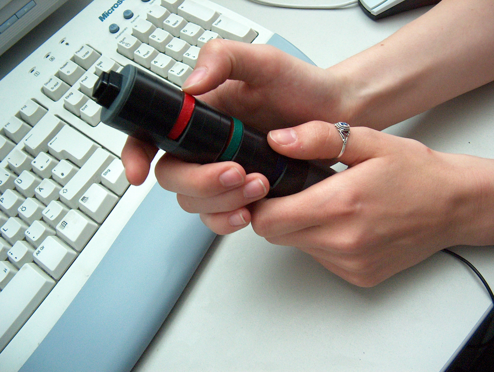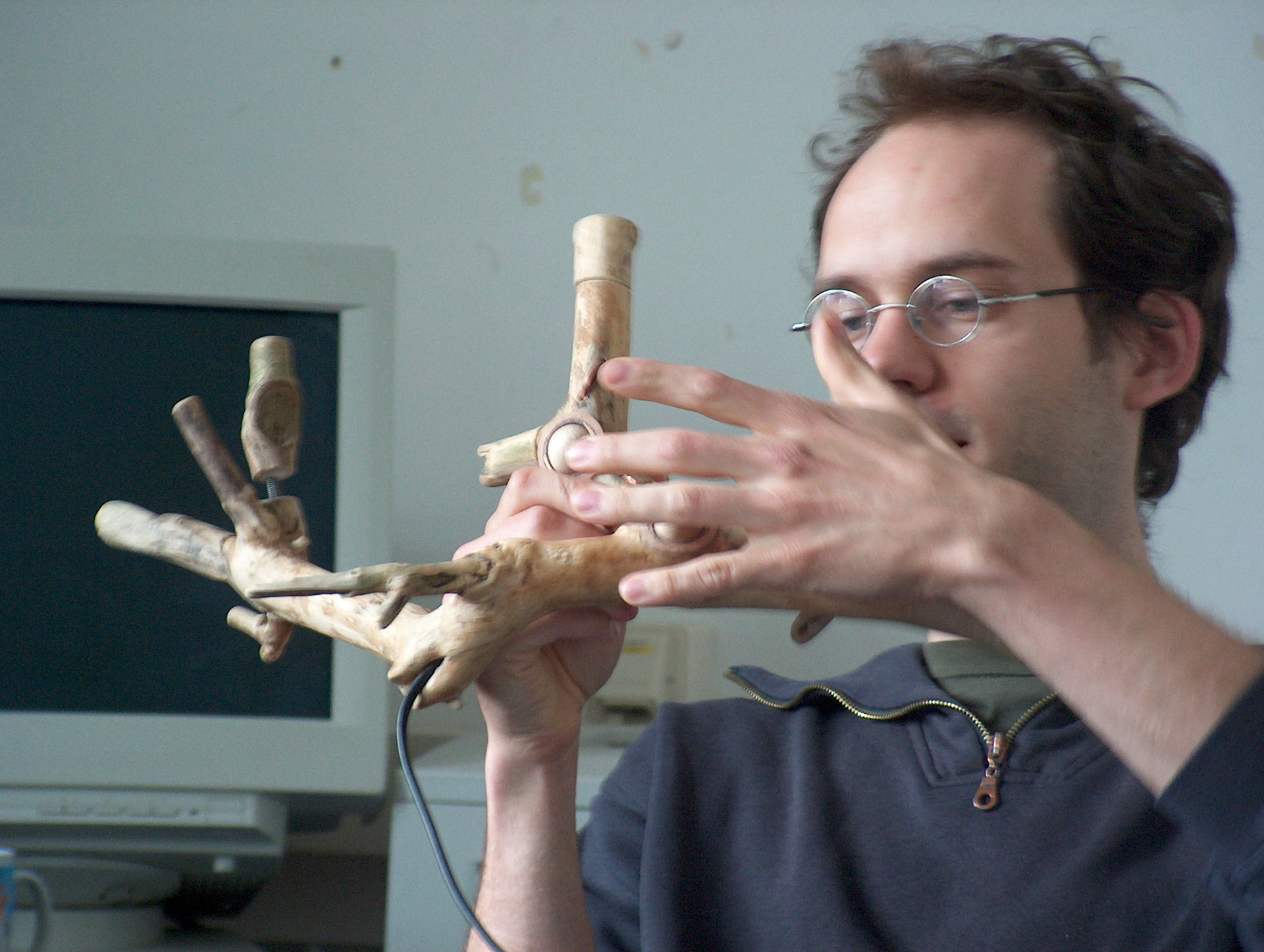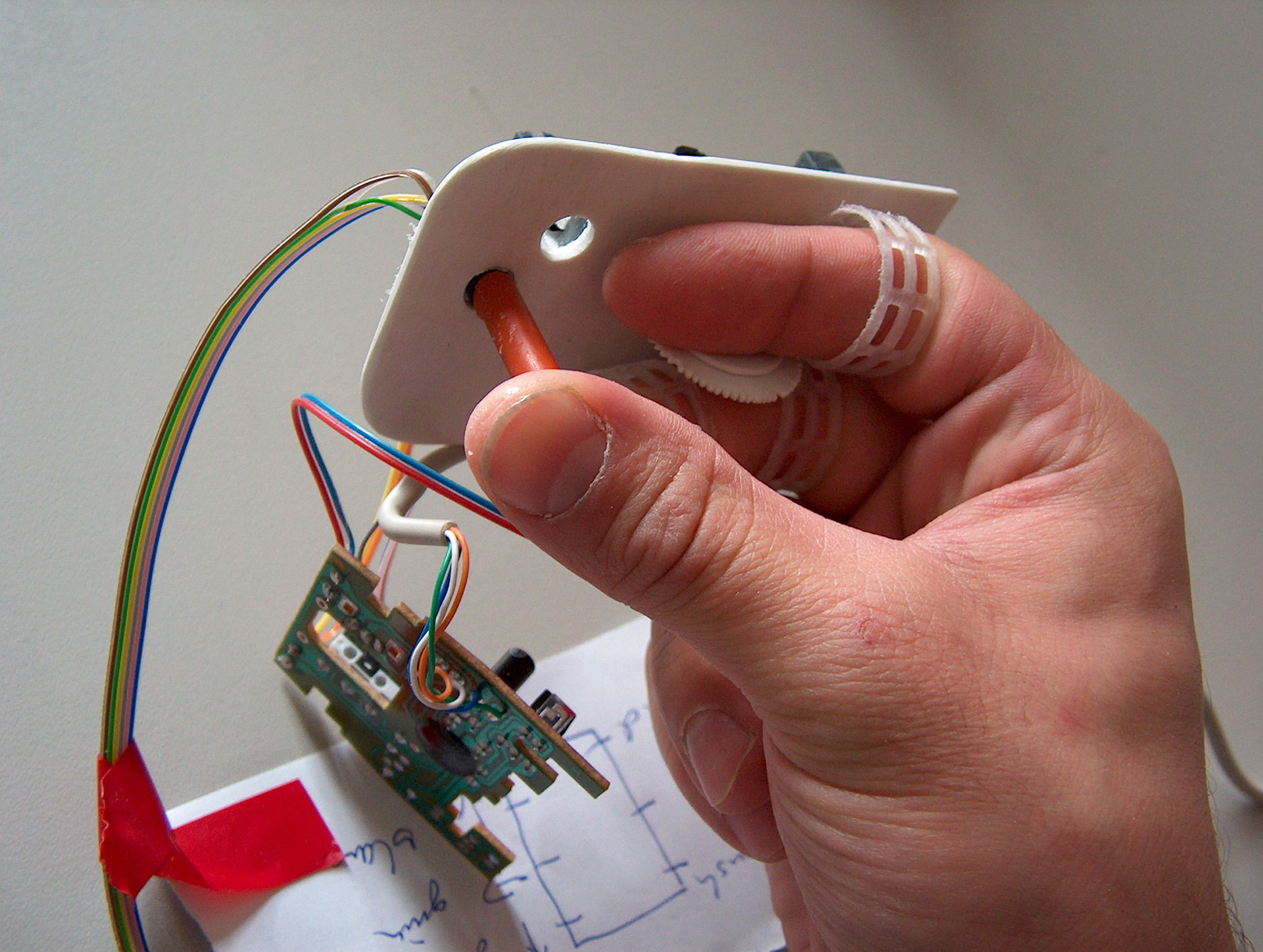 User-Experience Design meets Media Systems Engineering. Ergonomische Grundlagen der Hand. Greifen und Begreifen im Informationszeitalter. Handgriffe zum "Begreifen" der Informationswelten und Informationsräume. Technologische Entwicklungen ändern sich mit atemberaubender Geschwindigkeit. • welche gesellschaftliche Bedeutung hat es, wenn für alle Menschen auf diesem Planeten jeweils hunderte von Mikrochips zur Verfügung stehen? Welche kulturellen Konsequenzen folgen daraus, wenn alle uns umgebenden Objekte "intelligent" und "connected" sind? Was passiert in psychologischer Hinsicht, wenn man einen Gegenstand benutzt und dieser Gegenstand "erkennt" seinen Nutzer? Wwelche Auswirkungen hat die Miniatisierung der Geräte für die erreichten Grenzen der natürlichen Sinne der Benutzer? Was heisst "greifen" und "begreifen" in Zeiten des pervasive computing? Die Interaktion an sich wird Gegenstand des gestalterischen Prozesses. Bei diesem Projekt geht es um die Gestaltung von Eingabegeräten für die Interaktion mit und innerhalb digitaler Welten. In Kooperation mit dem Studiengang Mediensysteme werden die gestalterischen und medientechnischen Grundlagen bearbeitet. Betreuer: Prof. Wolfgang Sattler, Prof. Bernd Fröhlich, DI Stefan Kraus, DI Jan Hochstrate ___________________________________ Ergonomic fundamentals of the hand. Grasping and understanding in the information age. Handles to "understand" the information spaces. Technological developments are changing at breathtaking speed: What social significance does it have if hundreds of microchips are available to all people on this planet? What cultural consequences follow from this, if all surrounding objects are "intelligent" and "connected"? What happens psychologically when you use an item and this item "recognizes" its user? What effects does the miniaturization of the devices have on the limits reached by the natural senses of the users? What does "grabbing" and "understanding" mean in times of pervasive computing? The interaction itself becomes the subject of the creative process. This project is about designing input devices for interacting with and within digital worlds. In cooperation with the degree program Media Systems the design and media technology basics are worked on. Supervisors: Prof. Wolfgang Sattler, Prof. Bernd Fröhlich, DI Stefan Kraus, DI Jan Hochstrate