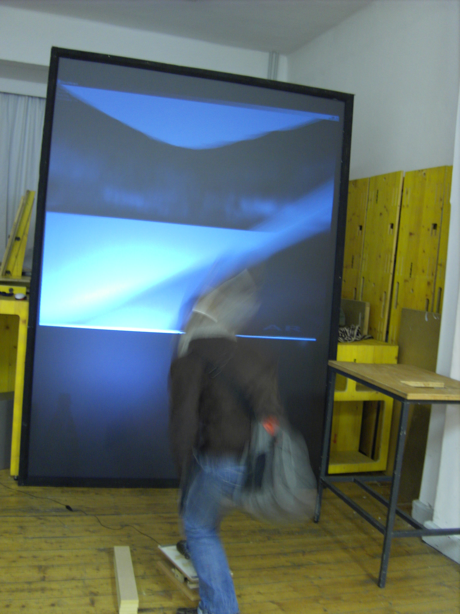 AR Walkthrough - Eingabegeräte für die Navigation in virtuellen Architekturmodellen /WS05-06 Kooperationsprojekt mit der Juniorprofessur für Architekturinformatik Die Navigation in immersiven oder augmentierten virtuellen Realitäten stellt nach wie vor ein interessantes Entwurfsproblem dar. Zwar gibt es mittlerweile zahlreiche Ansätze, eine befriedigende Lösung konnte sich bis jetzt noch nicht durchsetzen. Ausgehend von so genannten „Walkthroughs“, also der Begehung eines virtuellen Gebäudes Sollte ein Eingabegerät entwickelt werden, dass die Navigation mit den Füssen erlaubt. Erstens entspricht die Fortbewegung mit den Füssen unseren Erfahrungen vom Gehen und Autofahren, zweitens bleiben die Hände für weitere Werkzeuge frei, die eine Manipulation des Modells erlauben. Nachdem die ersten Prototypen gebaut waren, wurde die Effizienz der Geräte an einer eigens dafür konstruierten 3D Welt erprobt. Nicht zu unterschätzen sind die Kräfte, die bei einer Navigation mit den Füßen auf das Gerät einwirken, besser als gedacht lassen sich auch mit den Füßen präzise Eingaben erreichen.