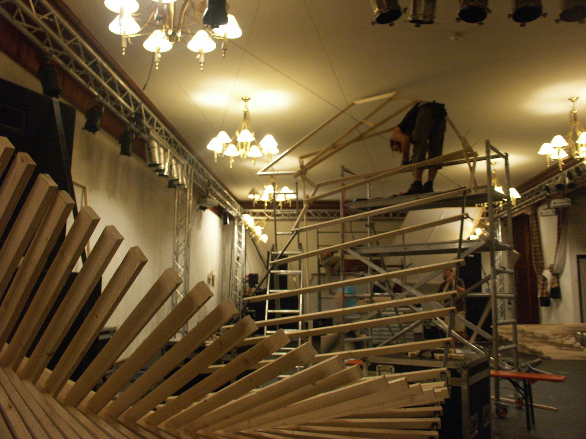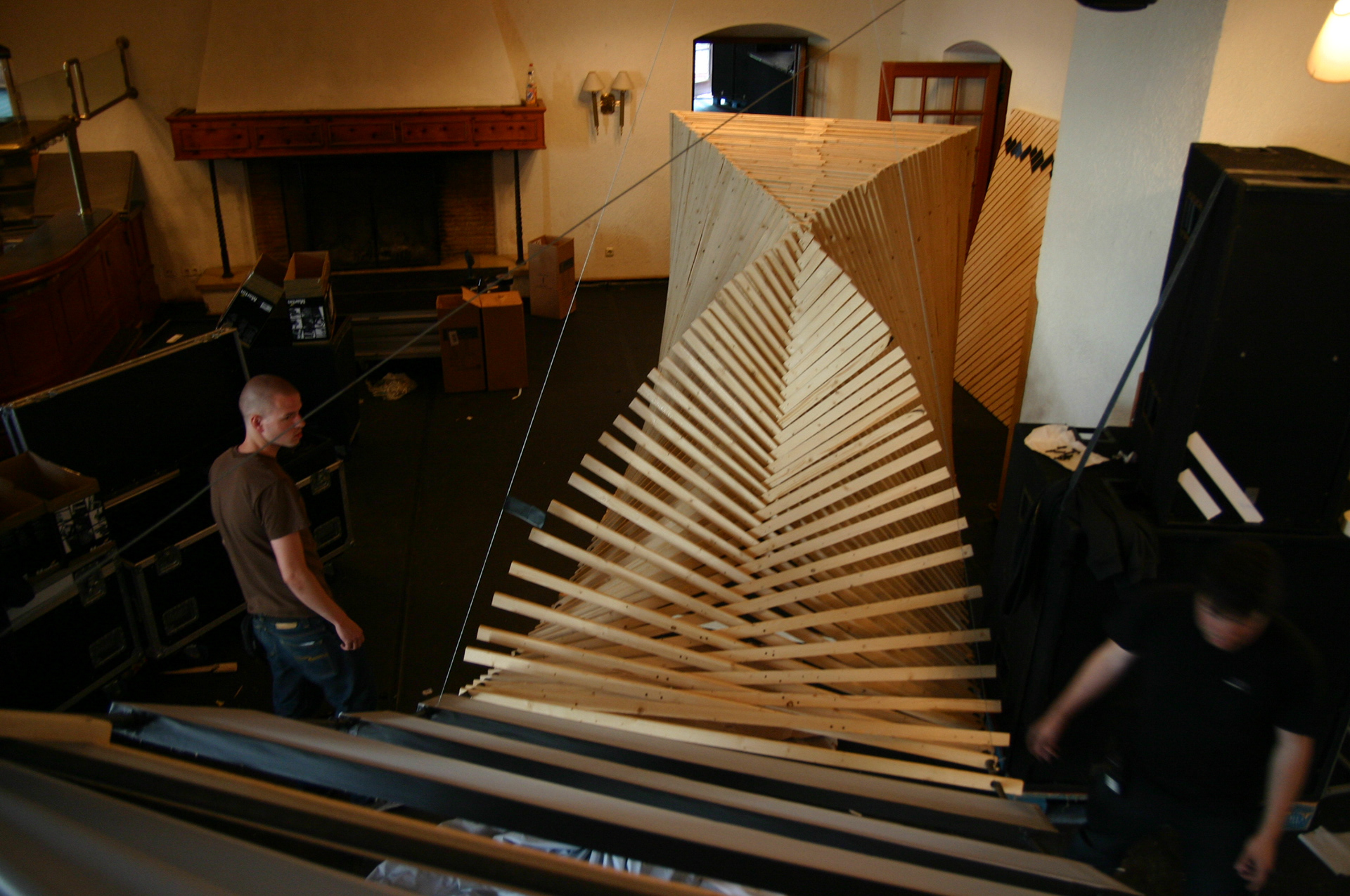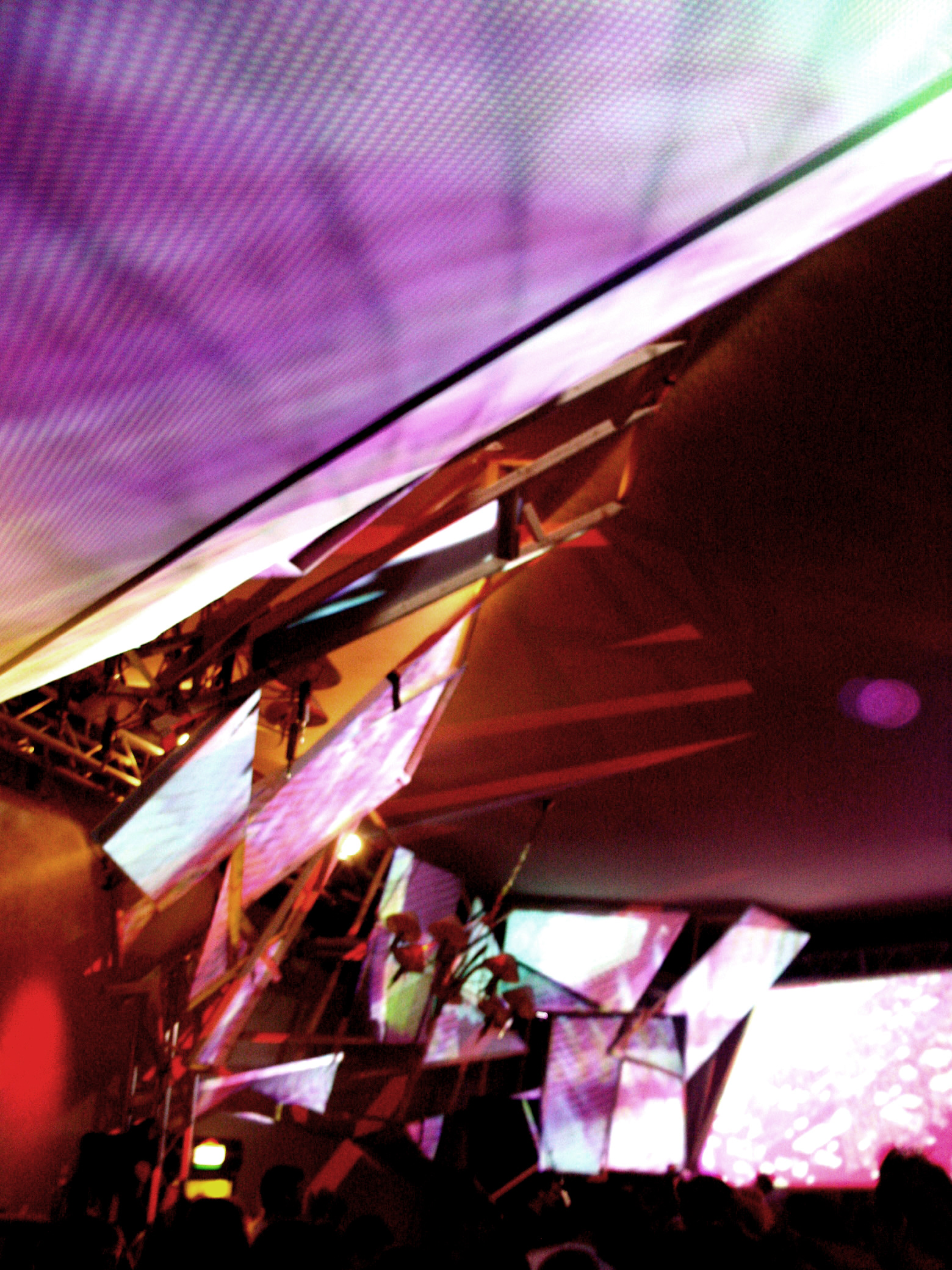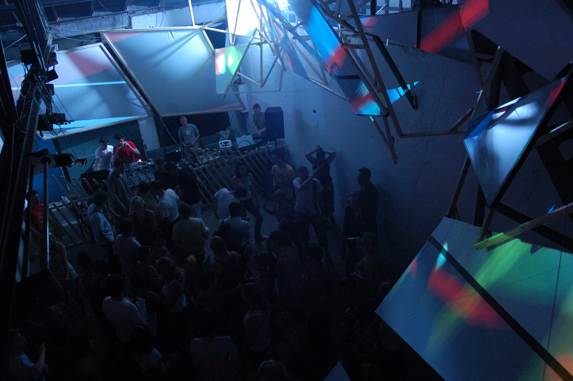 Spätestens seit dem Projekt „VJ-towards an electronic art“ 2002 hat sich die Bauhaus-Universität Weimar einen Namen als Brutstätte innovativer Live Video Performances und der dazugehörigen Technologien gemacht. Zum diesjährigen Shining Festival gestalten die Teilnehmer des Fachkurses "Medien im Raum" unter Leitung von Dipl.-Ing. Stefan Kraus einen Raum als visuelle Lichtinstallation. Mit Unterstützung der Mediaserver-Software MXWendler nutzen die VJs aus dem Umfeld der Bauhaus-Universität diese Struktur als Plattform für ihre Videokunst. Betreuer: DI Stefan Kraus ________________________________________________________________________ Since the 2002 project "VJ-towards an electronic art", the Bauhaus-Universität Weimar has made a name for itself as a hotbed of innovative live video performances and related technologies. For this year's Shining Festival, participants of the special course "Media in Space" transform the dancefloor to visual light installation. The VJs from the Bauhaus University use this structure as a canvas to show their video art. Supervisor: DI Stefan Kraus