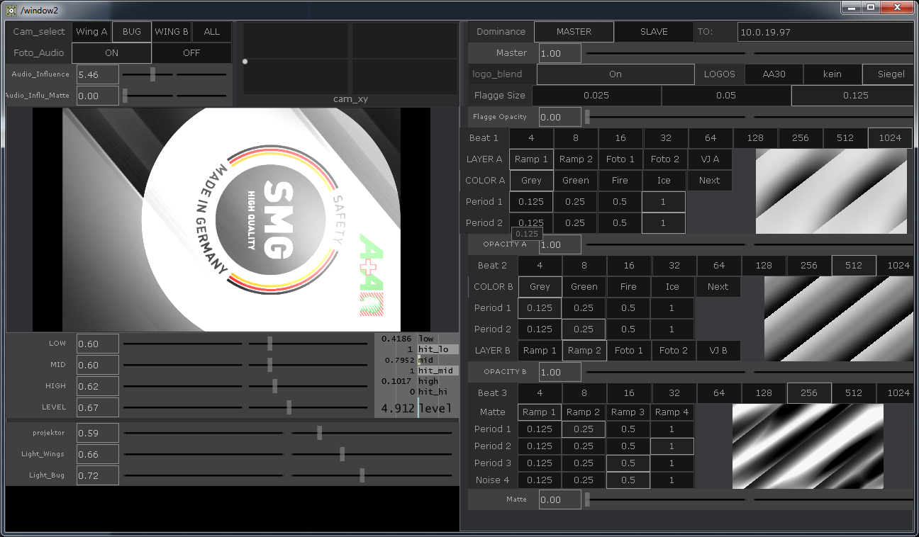2015 marked the 30th anniversary of the A+A Düsseldorf fair for saftey in the workplace. Commissioned by 3c, a leading agency for corporate communication I designed the digital scenography for the celebrations ceremonies stage in TouchDesigner, a visual programming environment. Later in the evening, the venue turned into a party location and I used my generative system to VJ live with a Band and a DJ.