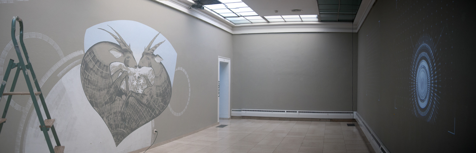 Auf Einladung der Street Art Legende Loomit entwickelten Stefan Kraus und Marc Sauter eine 6 Kanal Videoinstallation für die Ausstellung WAND|WAND in der städtischen Galerie Rosenheim. Die Leiterin des Galerie Monika Hauser wollte zum 100 jährigen Stadtjubiläum bewußt frischen Wind in die kleine Stadt am Rande der Alpen bringen und zeigte statt Bodensee Malerei mit Arbeiten von Loomit, ElBocho, Quintessez und MXZEHN einen Rundumschlag aktueller Post Street Art Positionen. Der Traum des Ingenieurs visualisiert drei Kompositionen von Marc Sauter als mehr als 9000 Pixel breite Sequenzer Struktur, durch die ein sich ein "Playhead" kontinuierlich von einem Ende der Gallery zum anderen bewegte. Sechs Projektoren und Lautsprecher zeigten die Reise des "Playheads" in drei aneinandergrenzenden Räumen, so daß der Klang und das Bild am Besucher vorbeiziehen, wie Treibgut auf einem Fluss. Die zeitliche Entwicklung eines Musikstücks wird so auf reale räumliche Verhältnisse übertragen. Takte entsprechen konkreten Abständen und jeder Klang findet seine Entsprechung in einem Symbol. Durch den Verzicht auf Farben konnte eine komplette Verdunklung der lichtdurchfluteten Räume vermieden werden. Projeziertes Licht und Sonnenlicht verwoben sich zu einer ephemeren Licht- und Klagerscheinung.