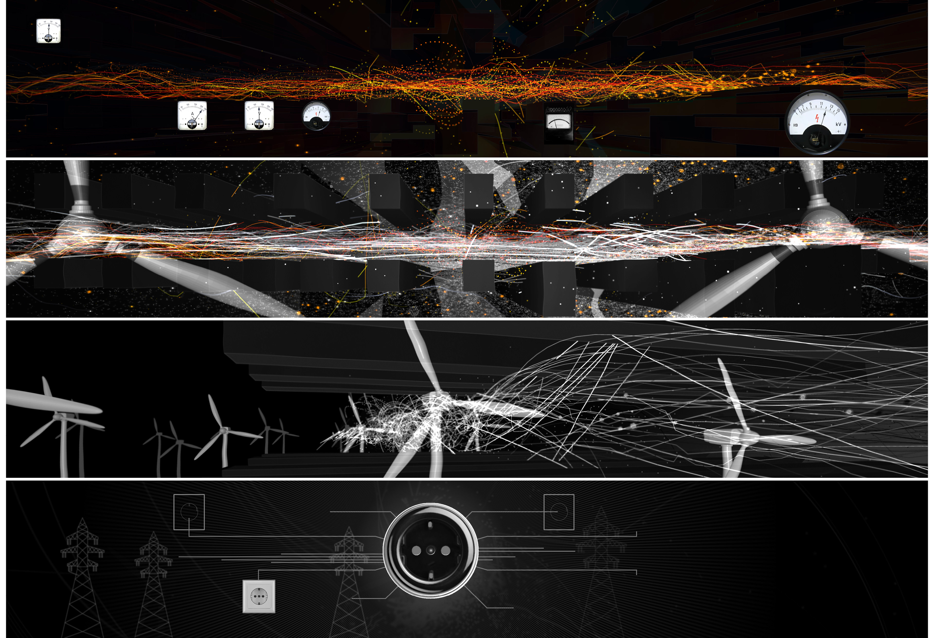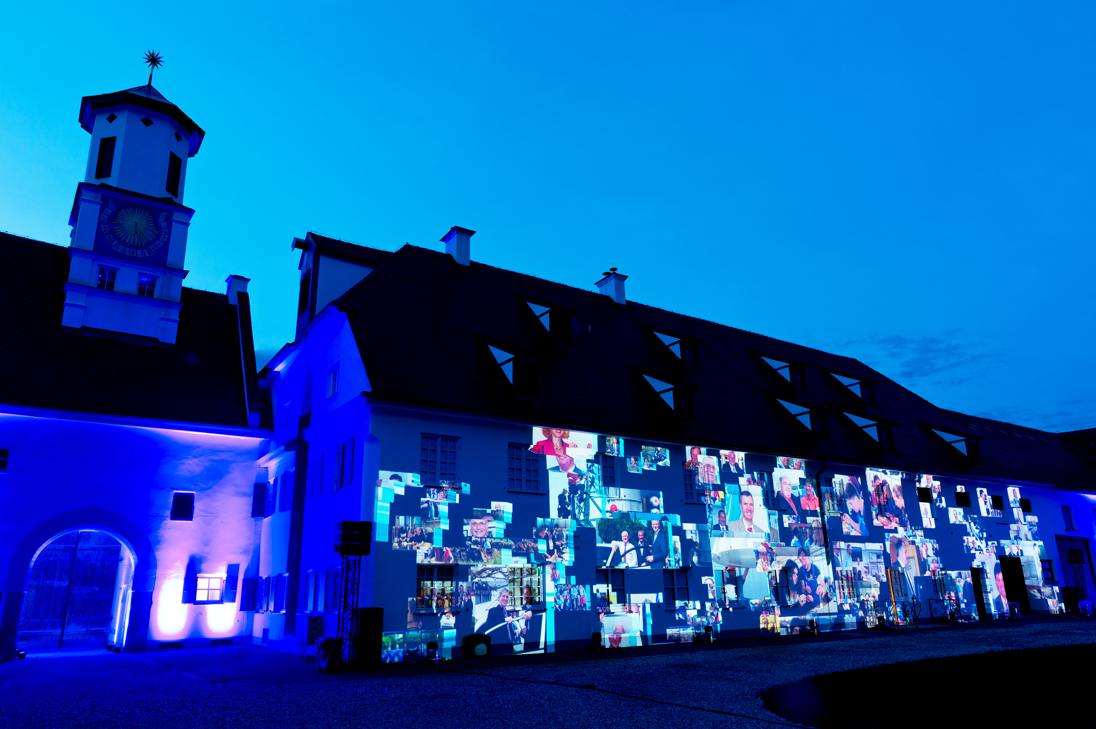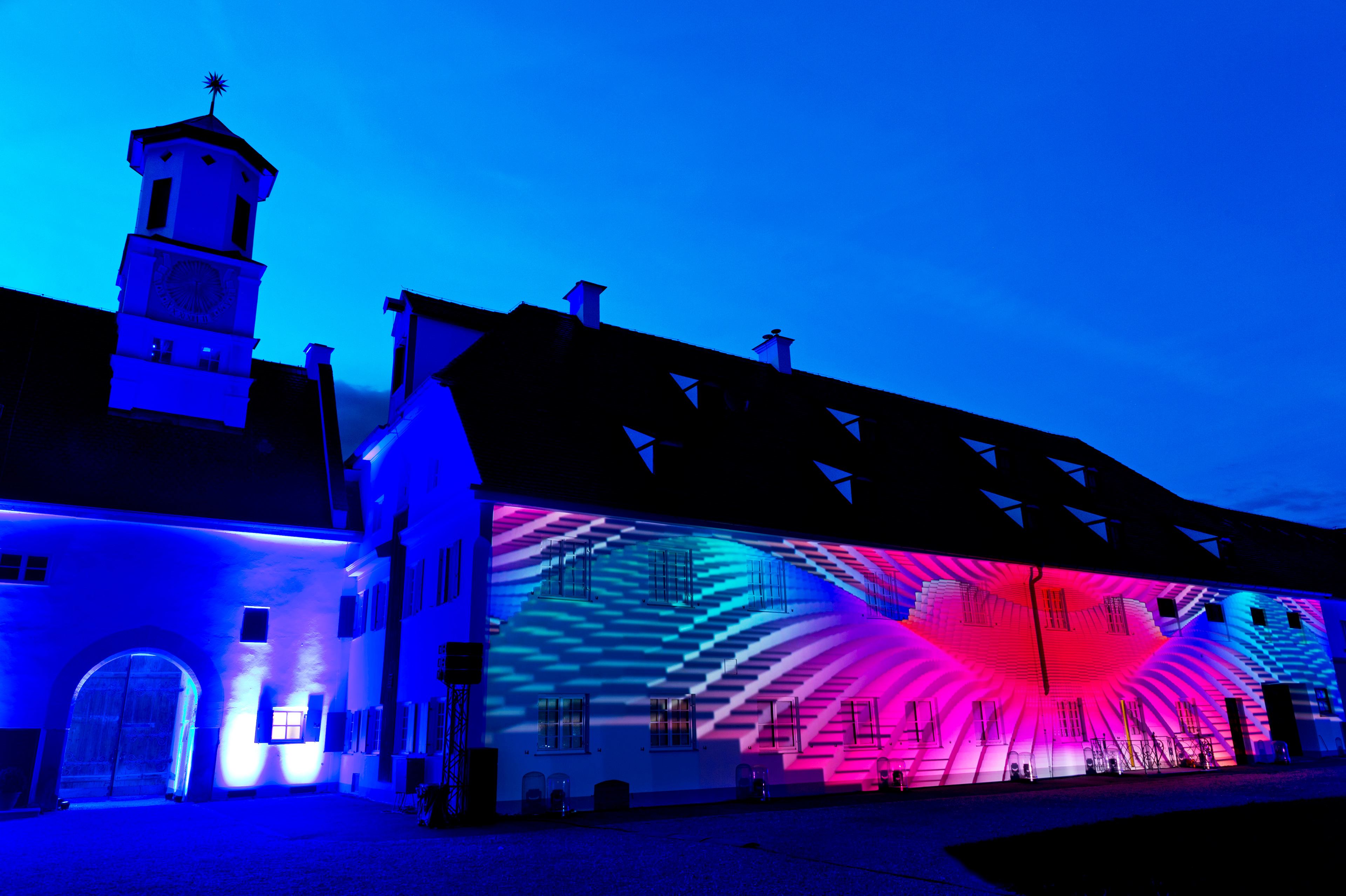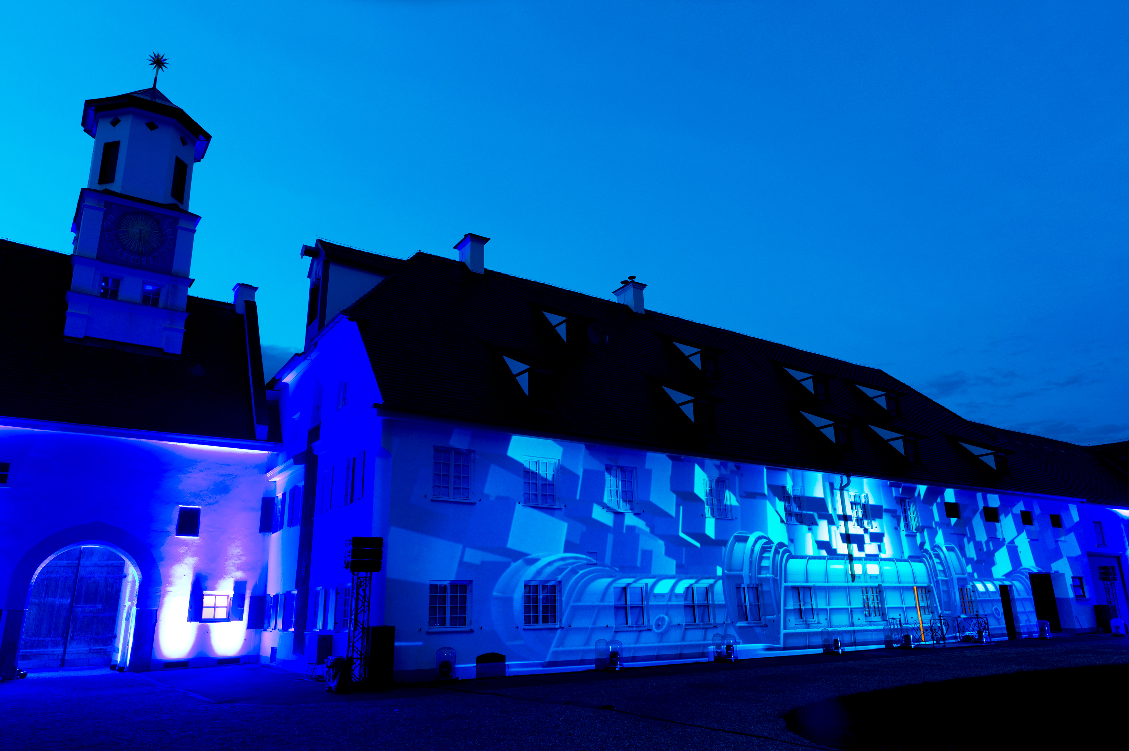In summer 2017 I was asked by the event company brandentertainment.de to produce a projection mapping show for one of the leading energy providers in southern Germany, the Lechwerke AG, short LEW. The objective was to create an audiovisual experience for their approx. 2000 employees on an idyllic castle near Augsbug. It was much fun to dig into the history of a company that has been on the forefront of electric energy in Germany since the very beginning. Budget was limited though, so I decided to render and produce the movie completely in TouchDesigner, a visual programming environment mostly used for interactive live productions. This challenged me to develop a custom workflow and a suitable esthetic but also brought the benefit of realtime render into a 4k production which I realised on nothing but two MSI GS30 laptop computers. Finally I designed a playback and mapping solution in TouchDesigner. Editing and compositing was done with Adobe CreativeCloud. Additional 3D modelling and rendering was provided by iris-crisis in 3D Studio Max.