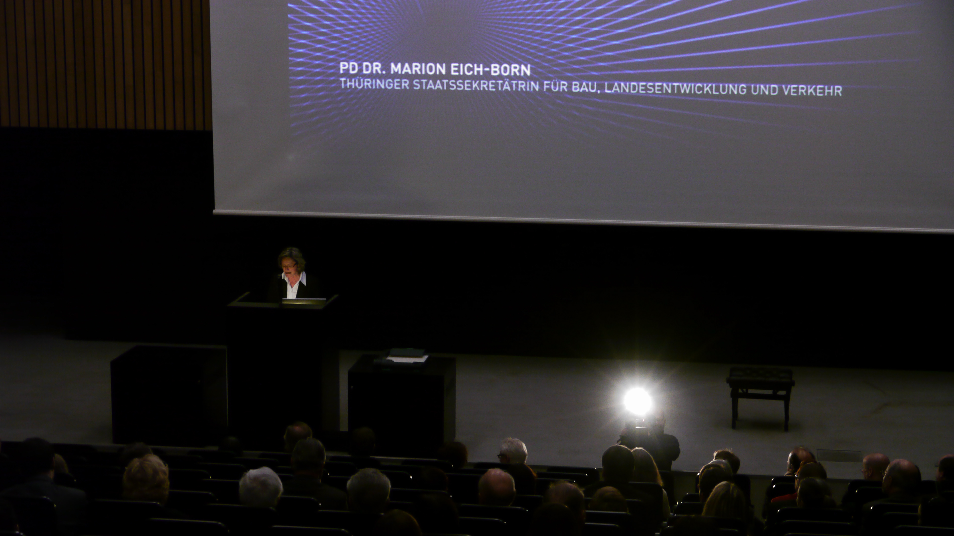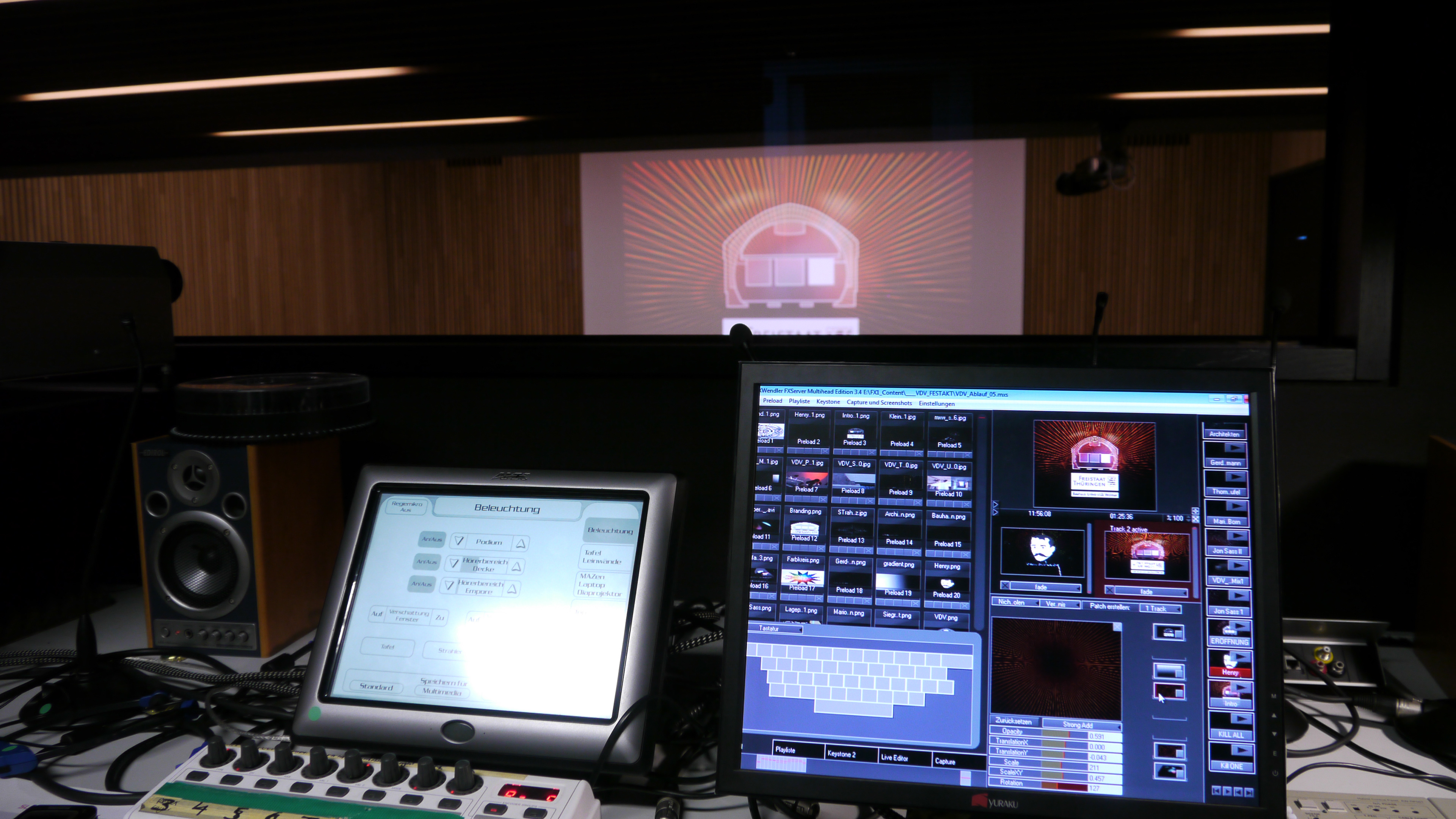 Im Auftrag des Thüringer Ministeriums für Bau, Landesentwicklung und Verkehr gestalteten wir den Festakt zur Wiedereröffnung des Van-de-Velde-Gebäudes in der Universitätsbibliothek 2009. Neben Einspielern und Untertitelungen entwickelten wir eine Sound gesteuerte Bewegtbildcollage, die von einer Live-Improvisation des Tuba-Virtuosen Jon Sass begleitet wurde. Dabei mixten wir technische Architekturzeichnungen mit Archivaufnahmen aus der Geschichte des Gebäudes und Fotoimpressionen aus der jüngsten Vergangenheit. Bauhaus-University commissioned us to create animated titles for the opening ceremony of the Van-de-Velde building in Weimar, better known as the Bauhaus. Part of the show was an audiovisual live performance together with horn player Jon Sass.