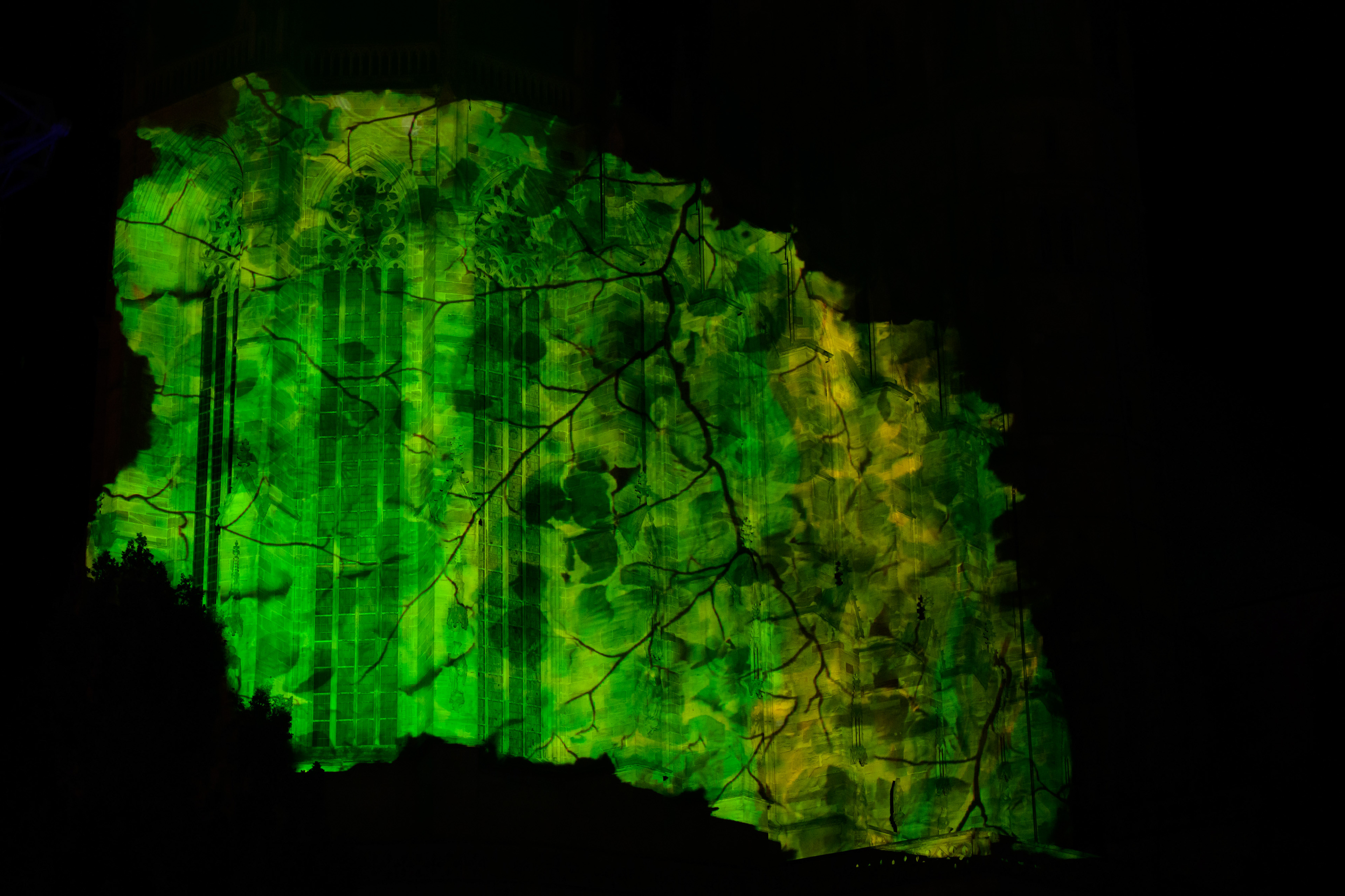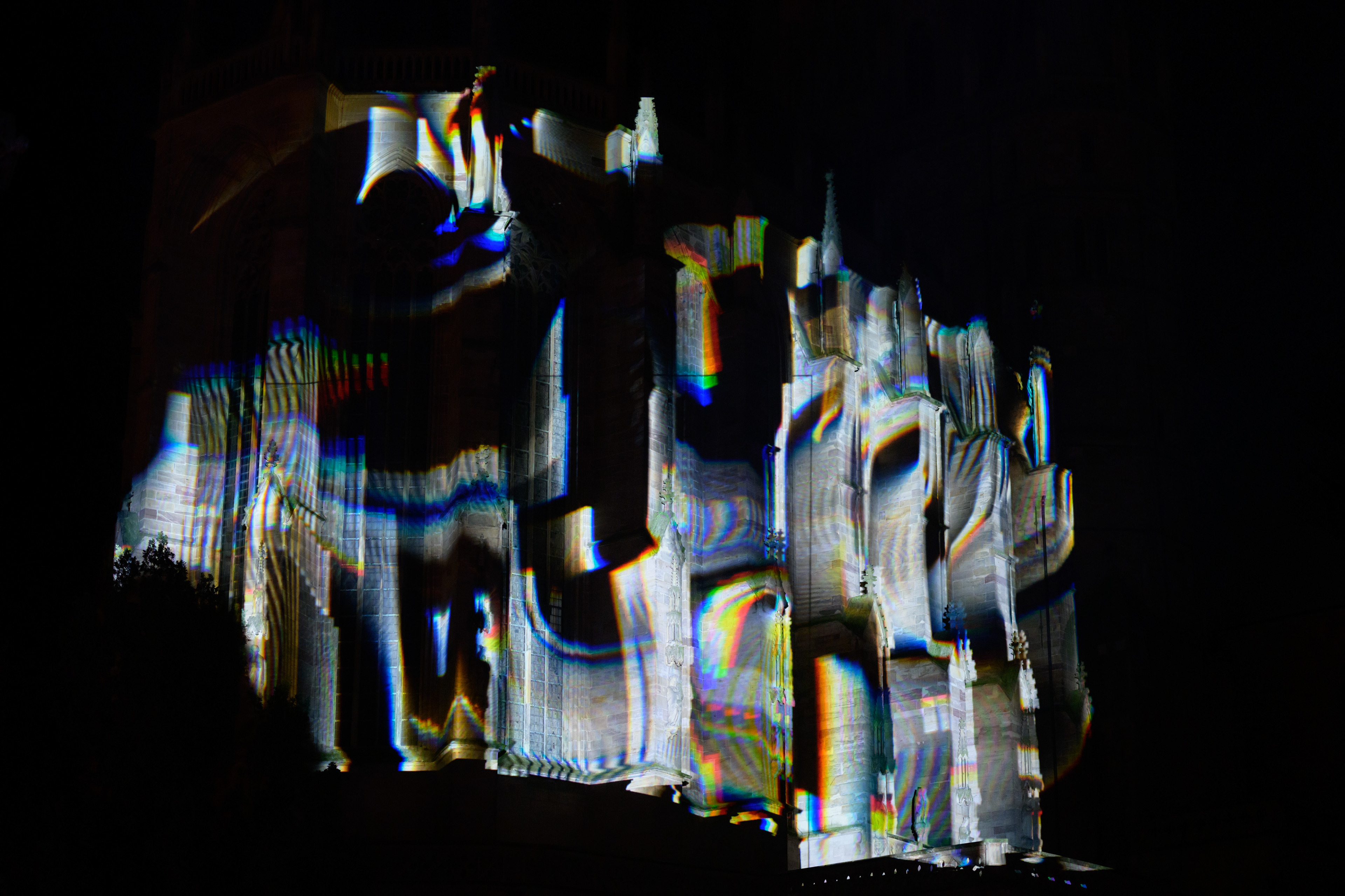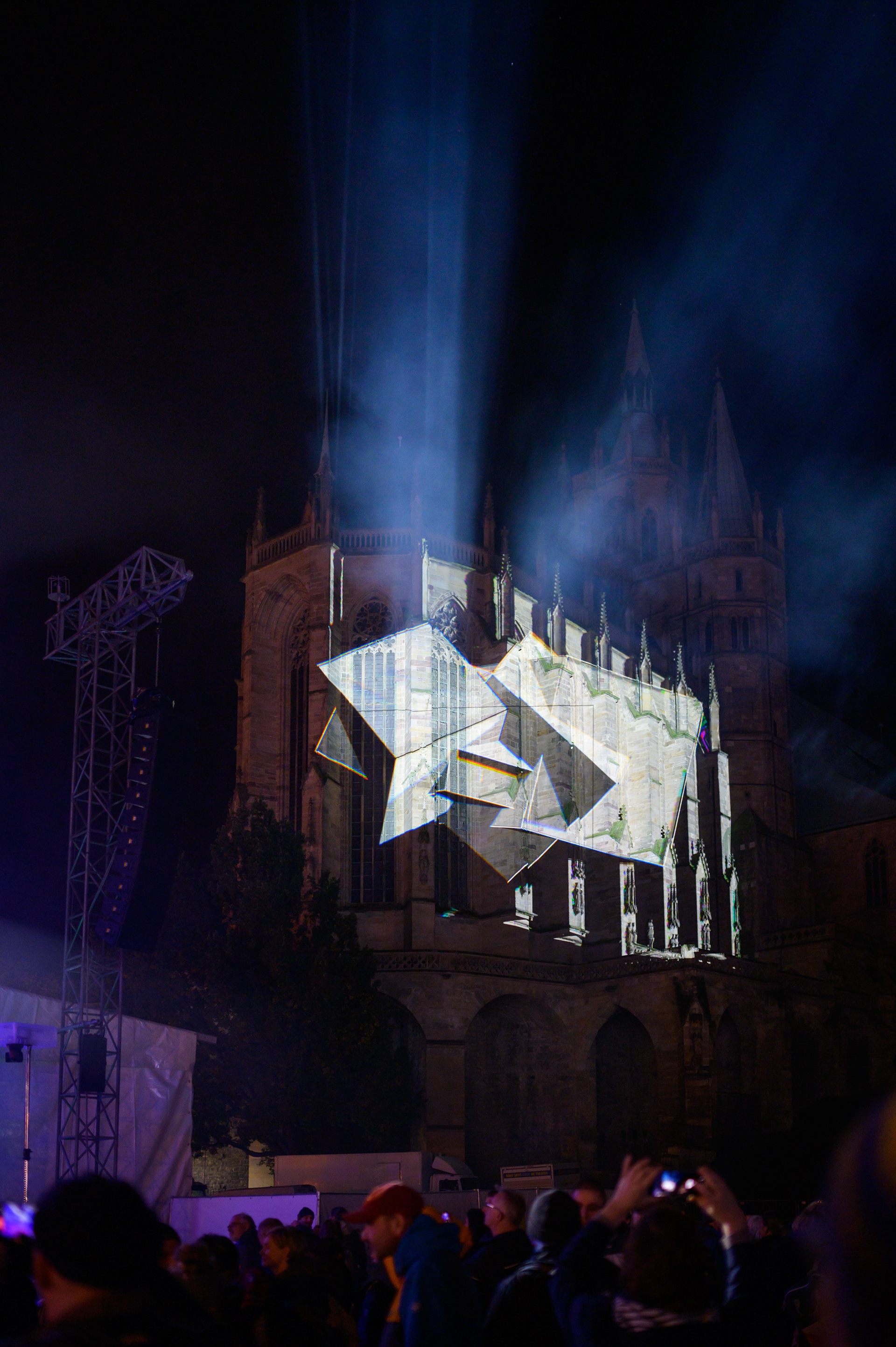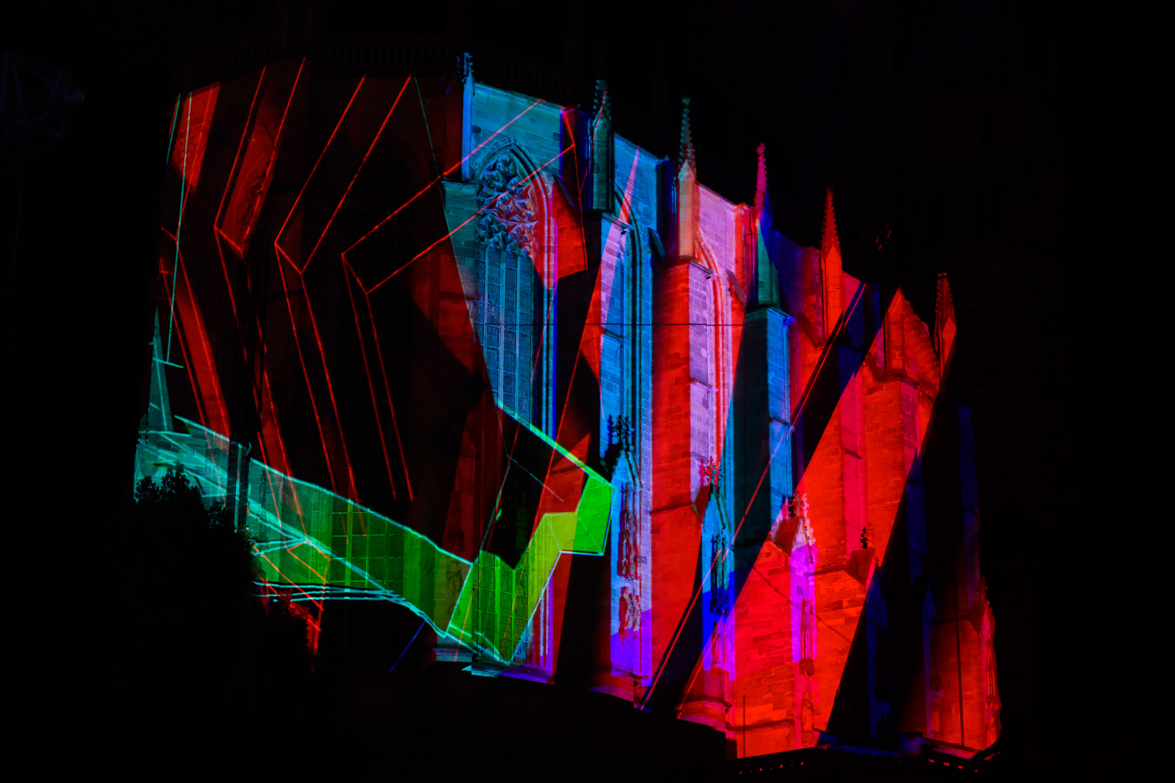 Once viewers had found the right viewing point, they were able to enjoy live animations by video artists Kopffarben, Lea Brugnoli and Markus Heckmann in a new, virtual space that added an unexpected dimension to the perception of Erfurt Cathedral.