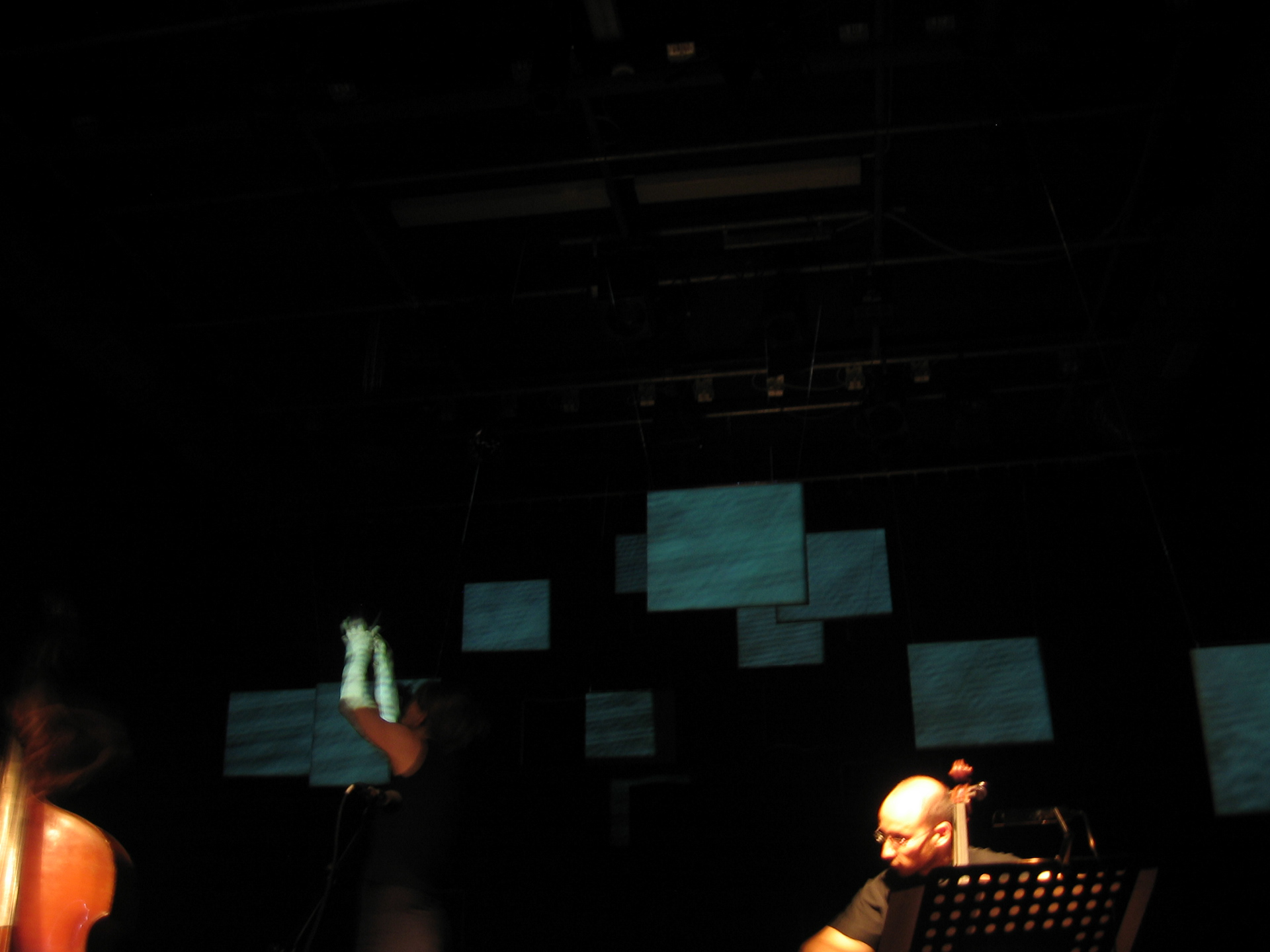 Eine unserer ersten Projection Mapping Performances. Schwebende schwarze Holztafeln im Bühnenraum wurden mit Live-Videoprojectionen synchron zu einem elektroakustischen Konzert, auf dem Klang eines Blatt Papieres basierend, bespielt. Das Stück von Jan Trützschler von Falkenstein wurde in DenHaag uraufgeführt. One of our first projection mapping performances. Black wooden plates hanging in stage space were performed with live video projection in sync with an elektroakoustic concert, based on the sound of paper. Piece by Jan Trützschler von Falkenstein premiered in DenHaag.