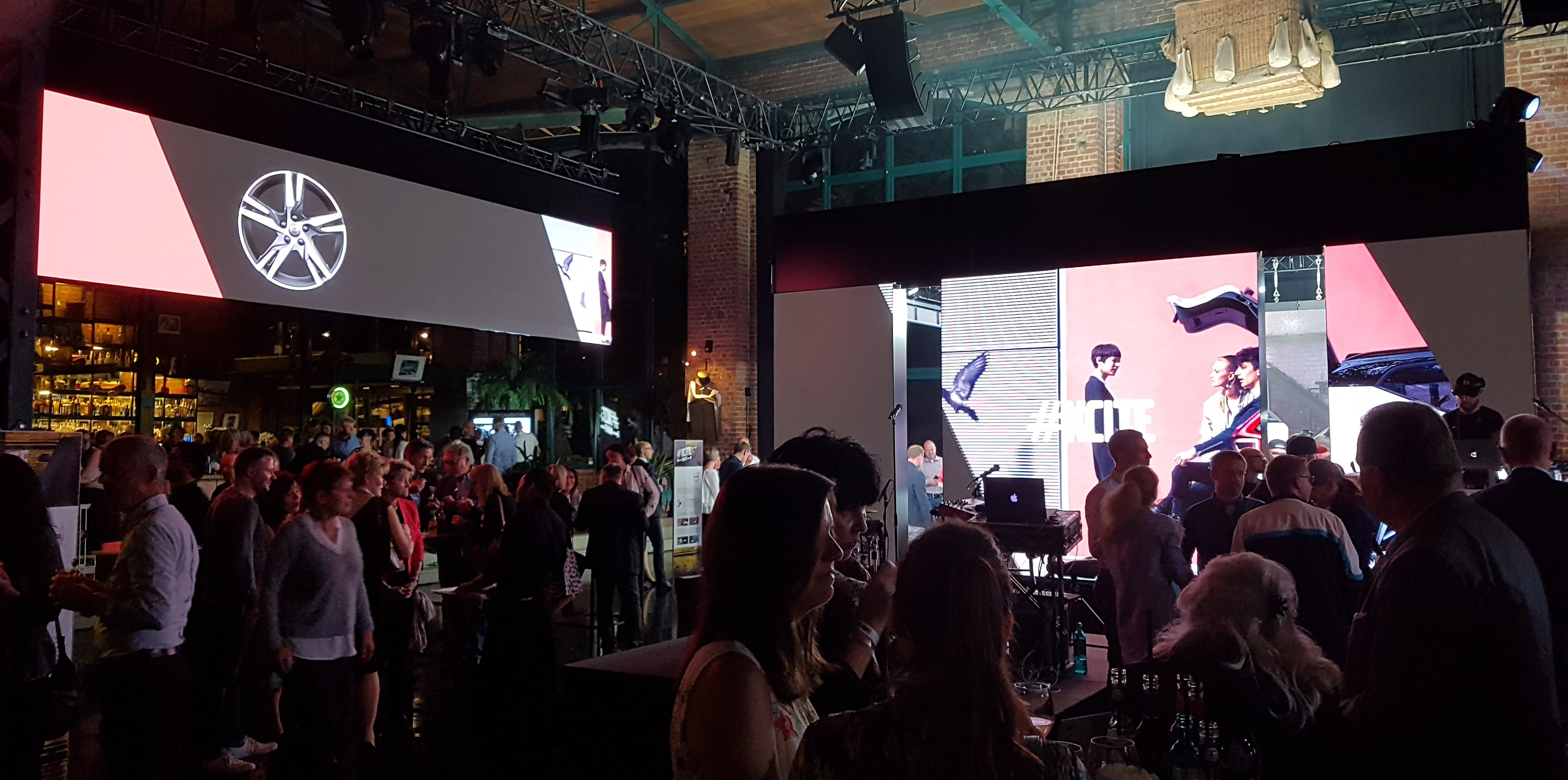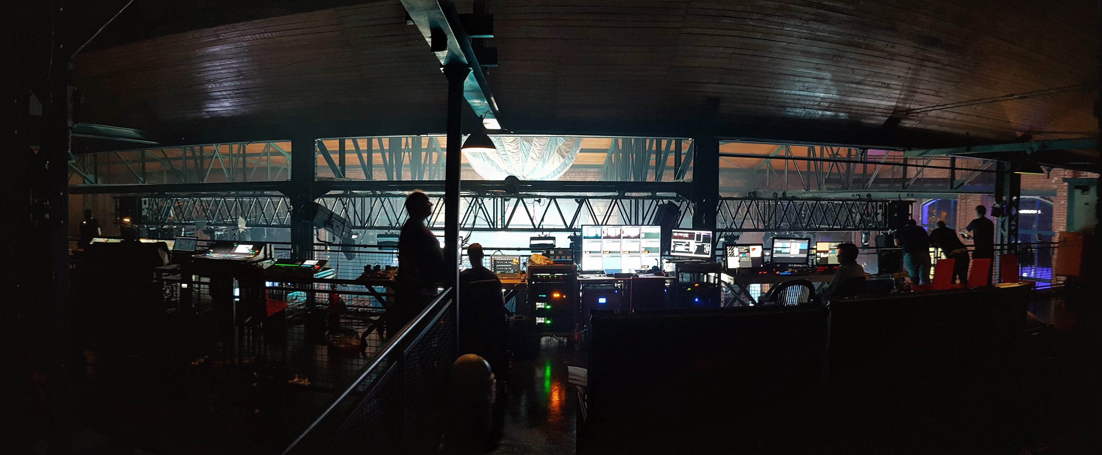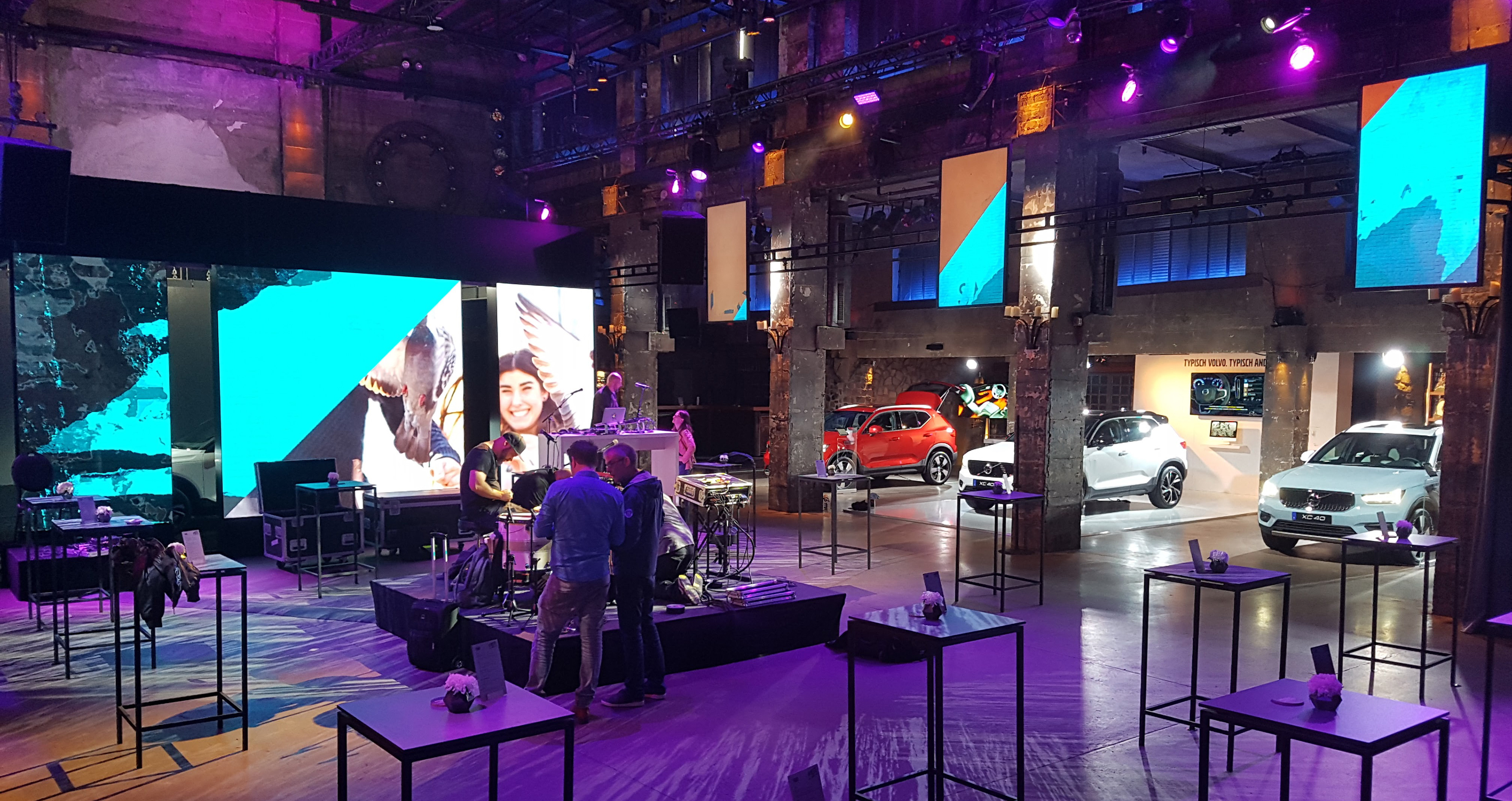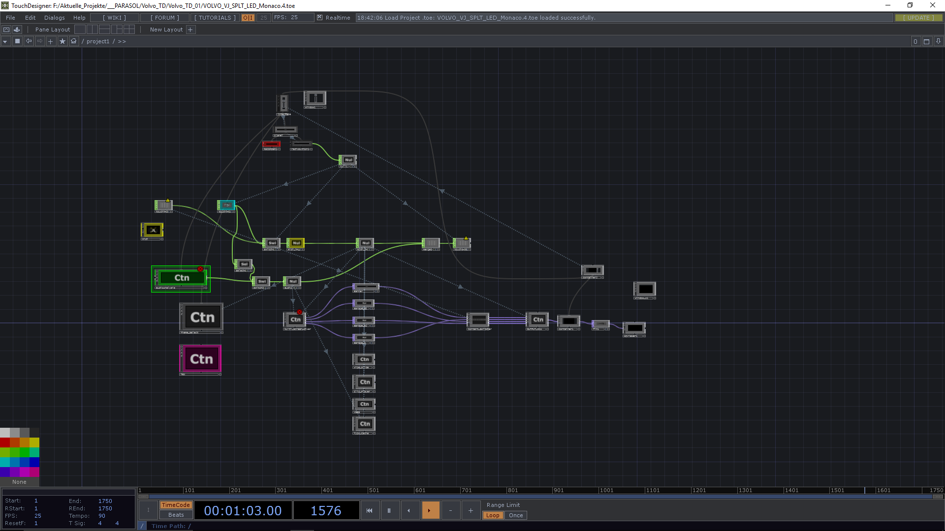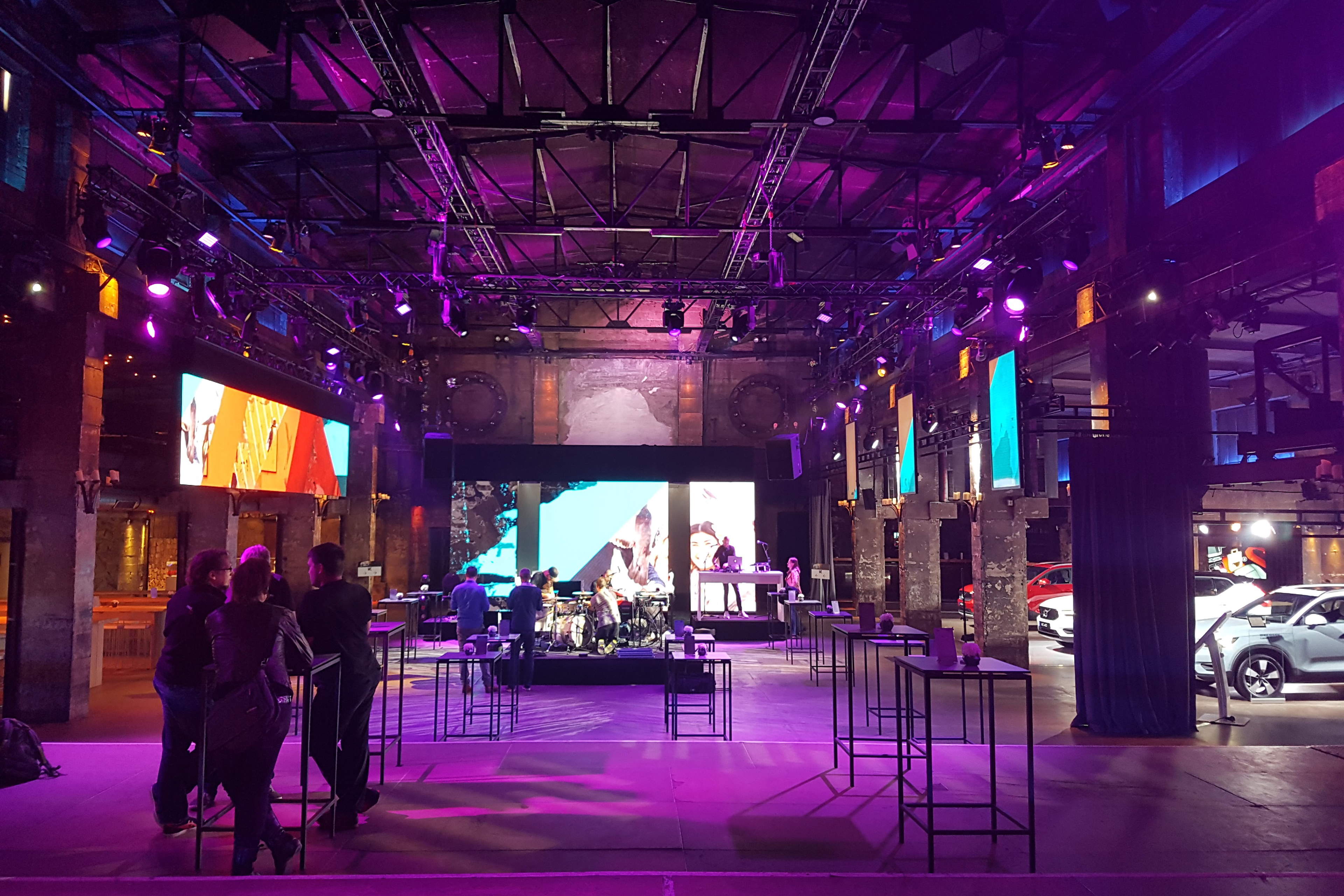 In autumn 2017 I was commissioned by Parasol Island, a high profile content production company to take their visuals for the reveal of the new Volvo XC40 into the live environment of the XCITE Night roadshow, which toured through 7 major German cities. The content had to be remixed live, in sync with the band and was spread out over 7 outputs with diverse resolutions. I designed a VJ engine in TouchDesigner, the visual programming environment, that could be fed by the Parasol Island team through folders with still images and mask animations. Those were animated in realtime on two MSI-GS30 laptops (with GTX1080Ti in the docking station), synced over network, controlled with the Akai MPD232 midi controller, composited into two 4k signals and sent over fibre channel to the PRG video crew, that cutted up the signals and routed them to the different outputs.